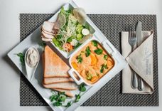 365 г • пшеничный хлеб, кайзер салат с индейкой, омлет с овощами